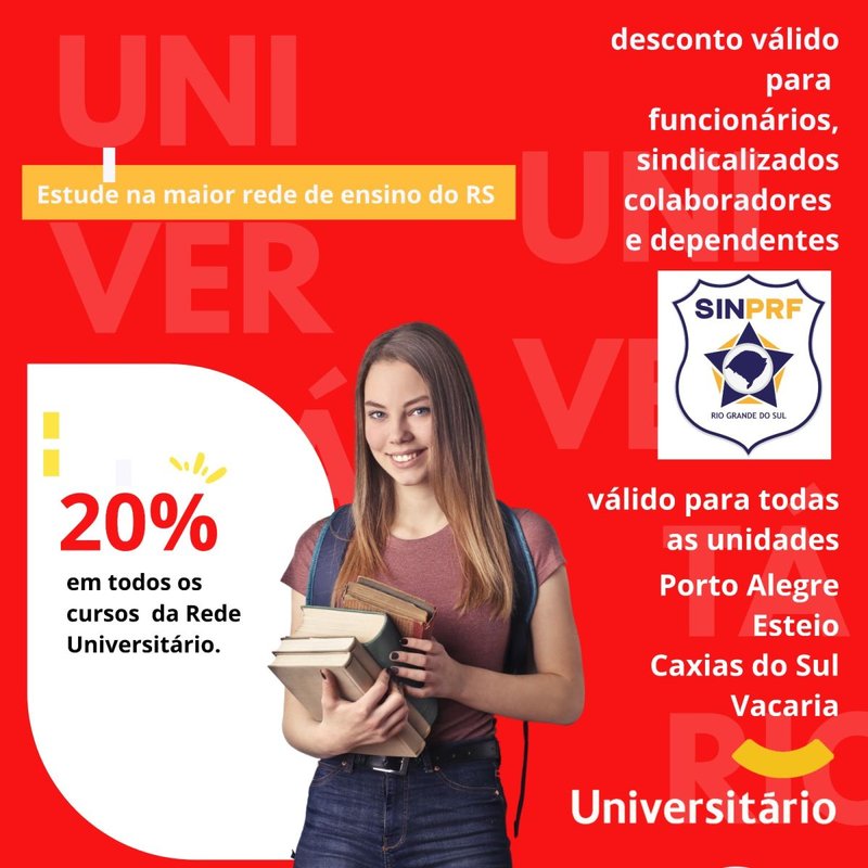 O SINPRF/RS firmou uma importante parceria com a Rede Universitário, ampliando os benefícios em educação para sindicalizados, colaboradores, funcionários e seus dependentes. O convênio garante 20% de desconto em todos os cursos oferecidos pela instituição, considerada a maior rede de ensino do RS.